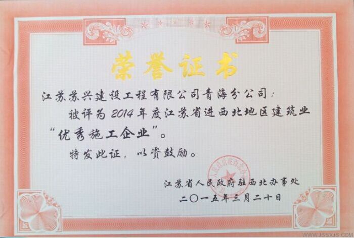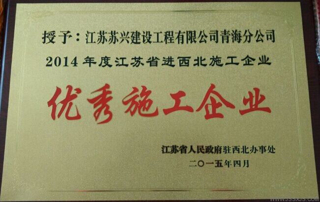 2014年度江蘇省進西北地區(qū)建筑施工優(yōu)秀企業(yè)