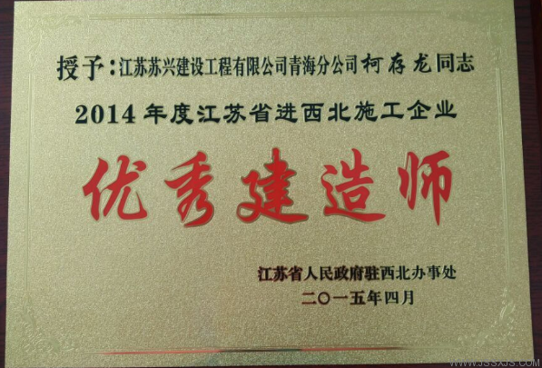 2014年度江蘇省進西北地區(qū)施工企業(yè)優(yōu)秀建造師